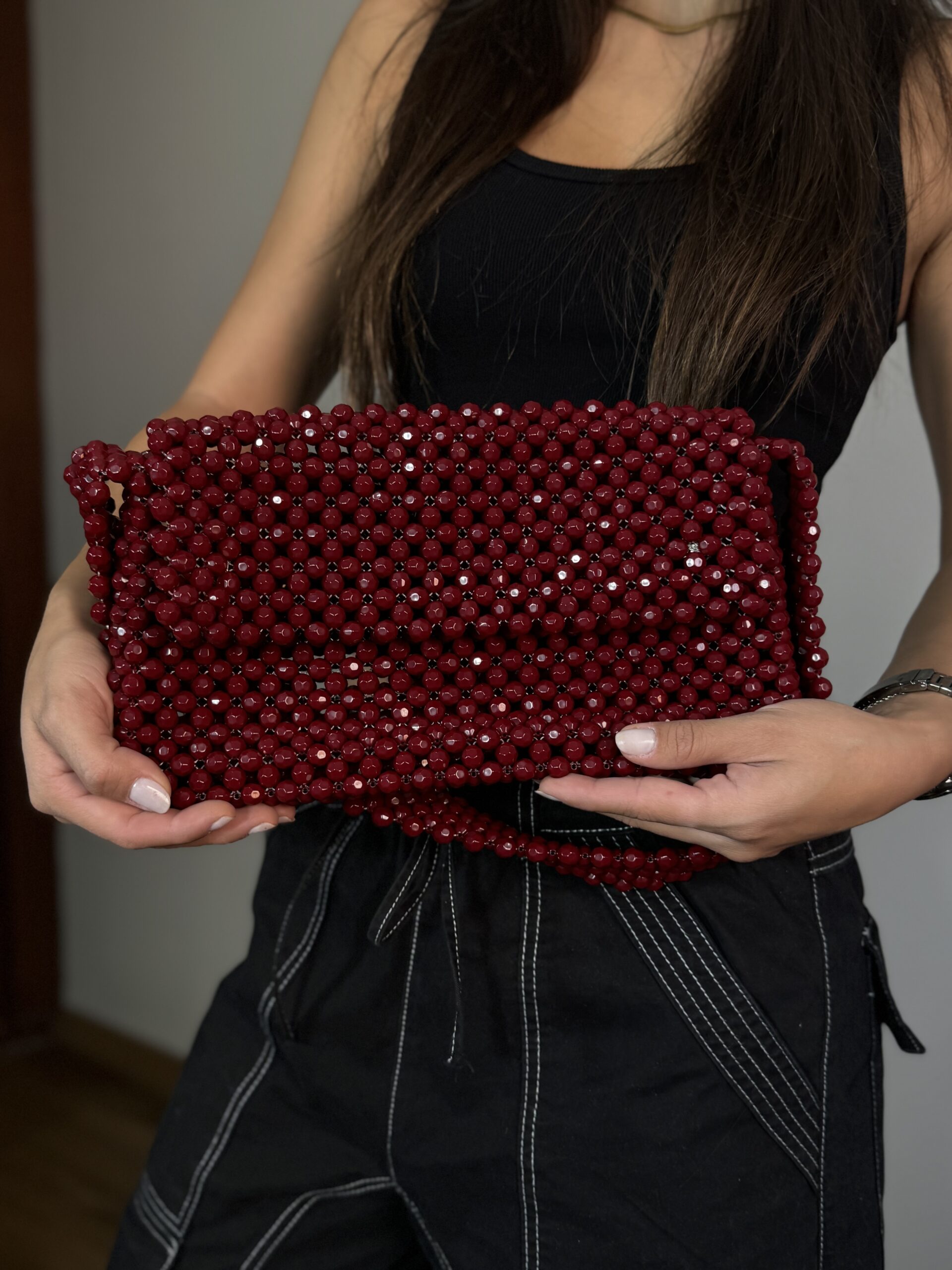 O processo de produção é 100% manual, bead por bead, leva de 5 a 7 dias úteis para a fabricação. Desse modo você receberá uma peça que combina com seu estilo e é completamente única. A bolsa na imagem corresponde ao tamanho médio e pode sofrer pequenas alterações de cor devido à iluminação da foto.