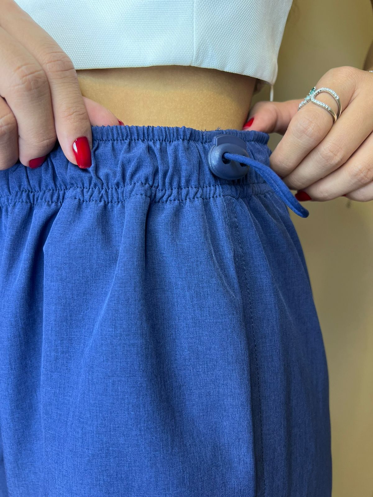 Pode ser usada de duas formas diferentes! Com o ajuste na cintura, para que fique mais alta ou de cintura baixa.