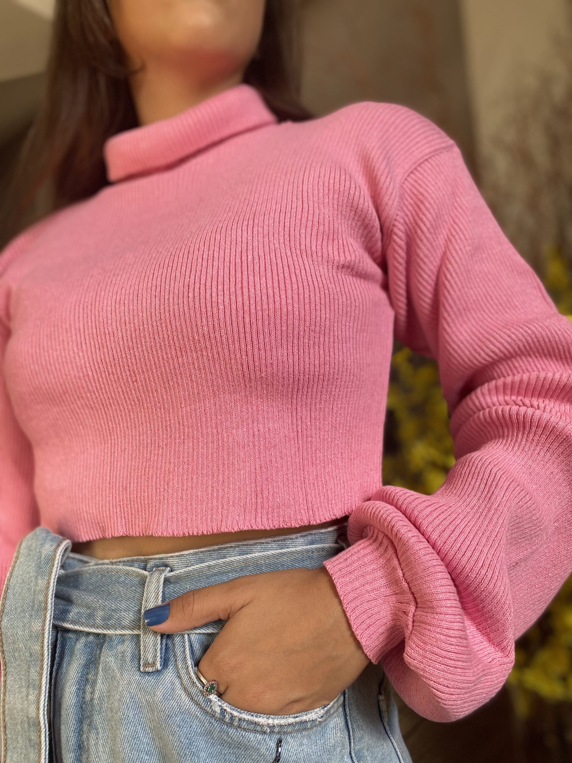 O Tricot Atenas é o tricot ideal para quem busca por praticidade, com um toque leve, modelo cropped, mangas maiores e gola alta, ele é a peça perfeita para ser usada no dia a dia.